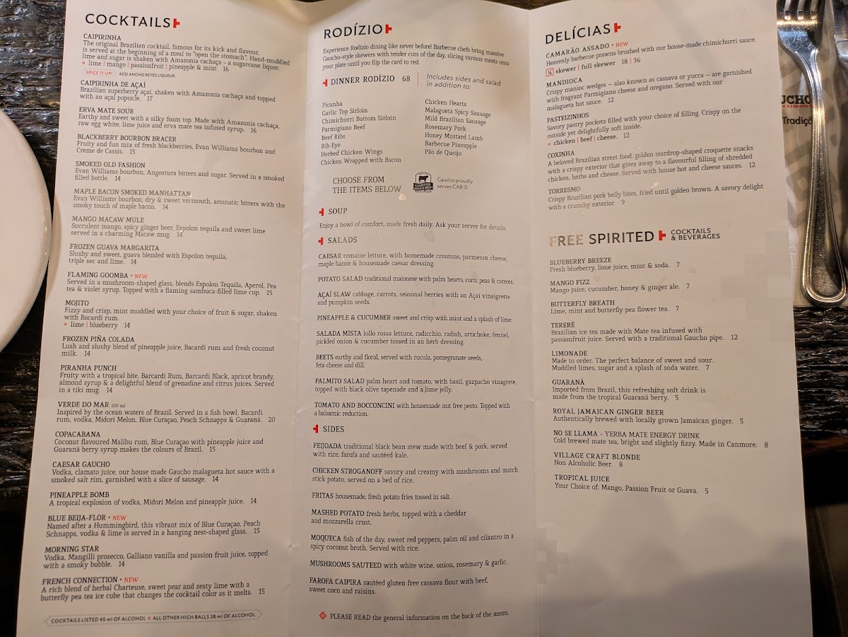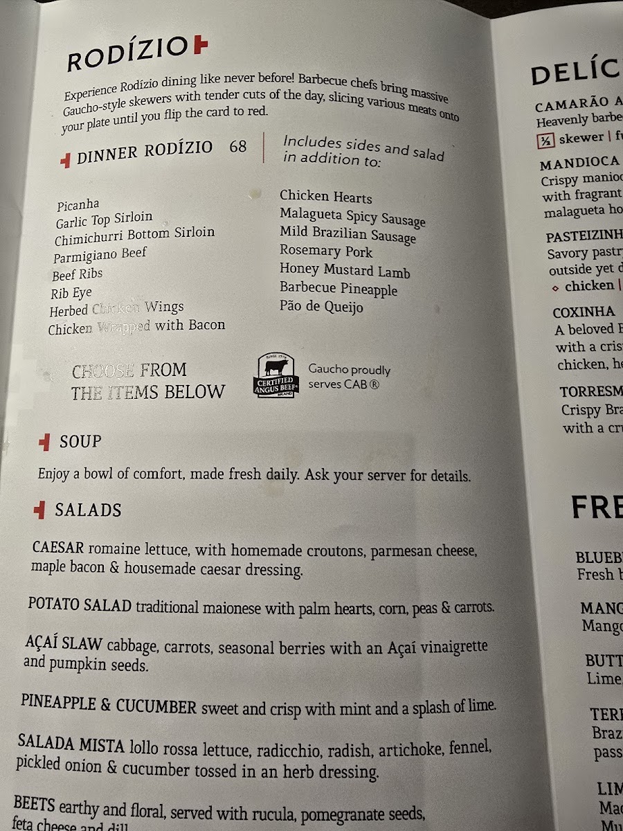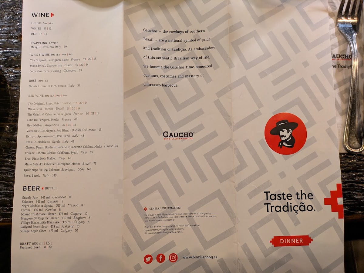 Gaucho Brazilian Barbecue Menu (2025 Update)